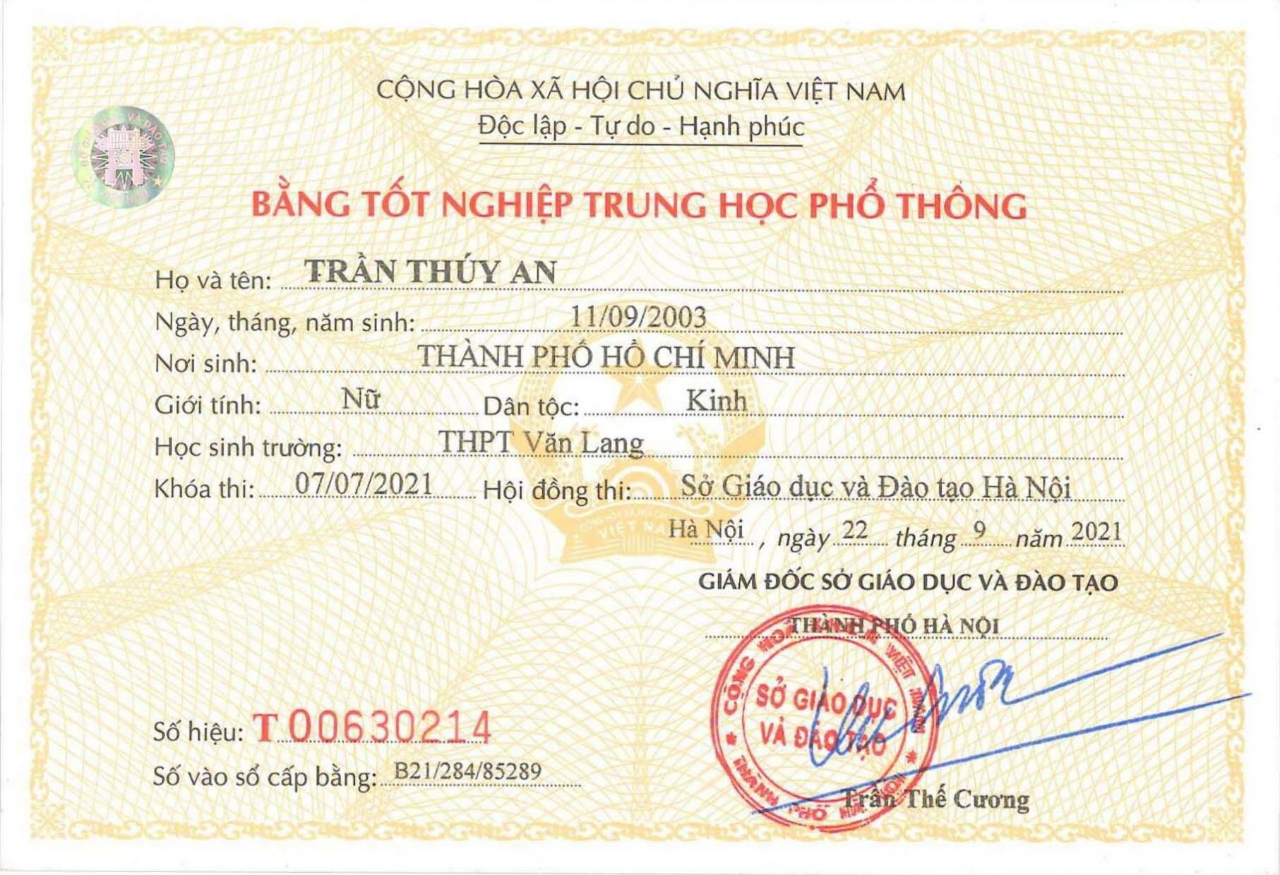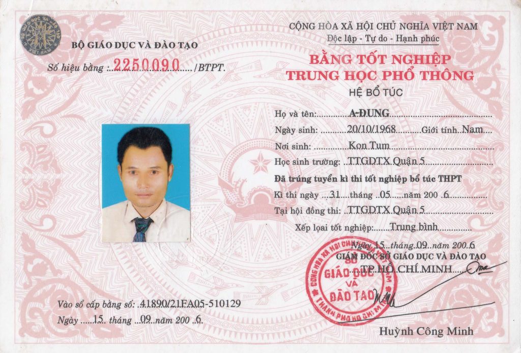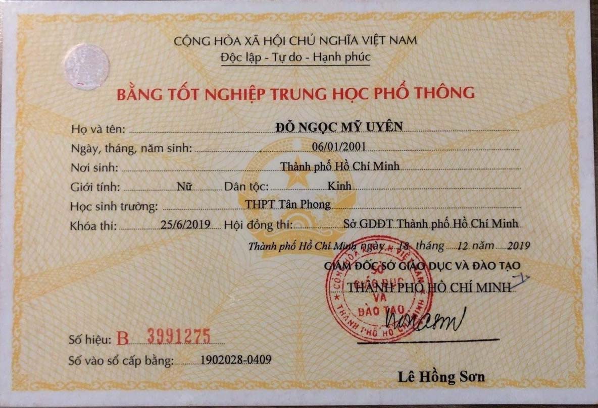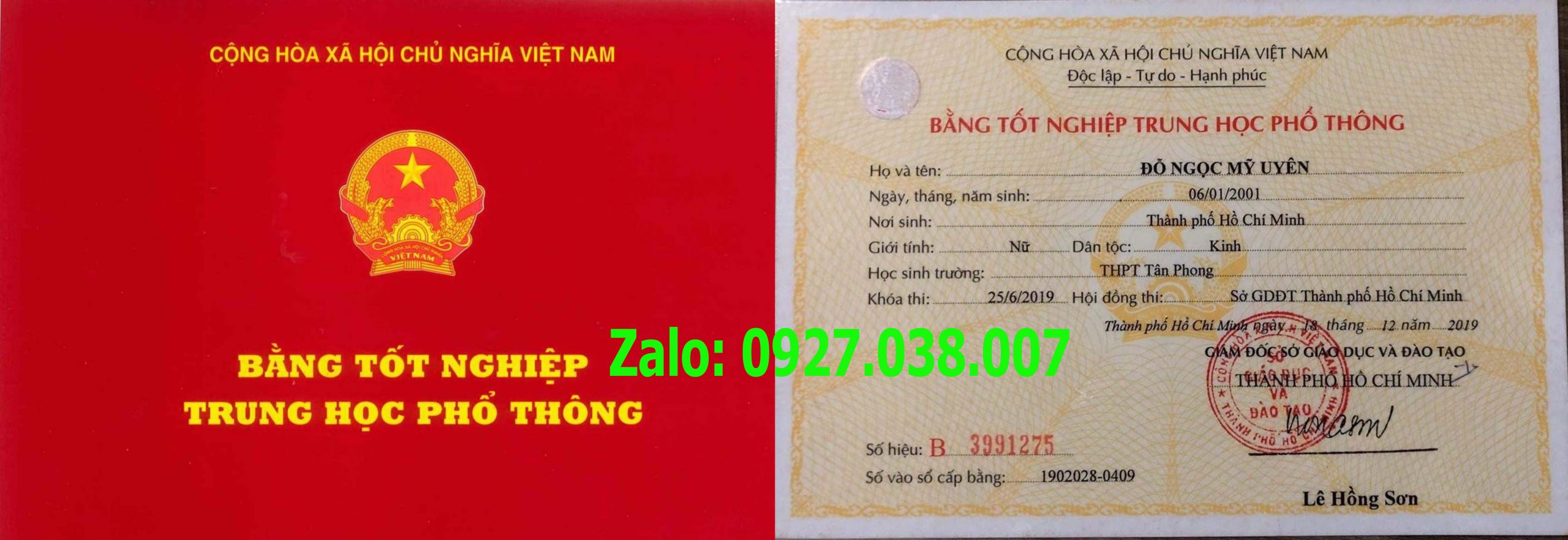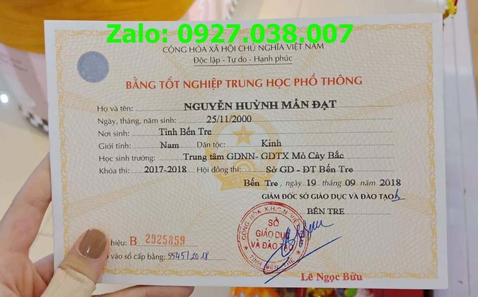 Bằng THPT – Bằng Cấp 3 Bến Tre được làm từ phôi thật, tem thật của các trường. Do vậy, chúng tôi đảm bảo chất lượng như bằng thật chất lượng chính xác 100%. Bao soi, bao công chứng trên toàn quốc