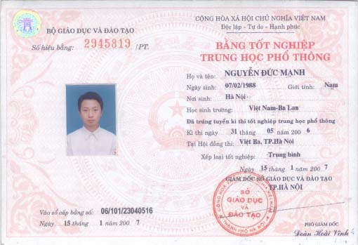 Các bạn có thể sử dụng tấm Bằng THPT Bến Tre này đi xin việc làm , nâng bằng lái xe ,đi học , đi du học , XKLĐ (xuất khẩu lao động) khắp mọi nơi.